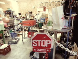 Vous y trouverez également la caisse et des bénévoles qui pèsent chaque objet. Ainsi nous pouvons comptabiliser le poids détournés de l’enfouissement : 86 tonnes en 2016